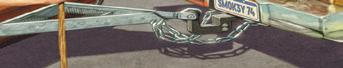 Constructed from a 50-foot-tall wind turbine wing, and installed in 2022, this artwork by artist Donald Lipski is tied to the history of Columbia Pike. The sculpture is a playful nod to the “pikes” employed to stop travelers on the Columbia Pike toll road in the 19th century. The structure emulates the vertical standing position of a pike after travelers have paid their toll, enabling them to proceed into the county and beyond, as travelers could then cross the Long Bridge into Washington.