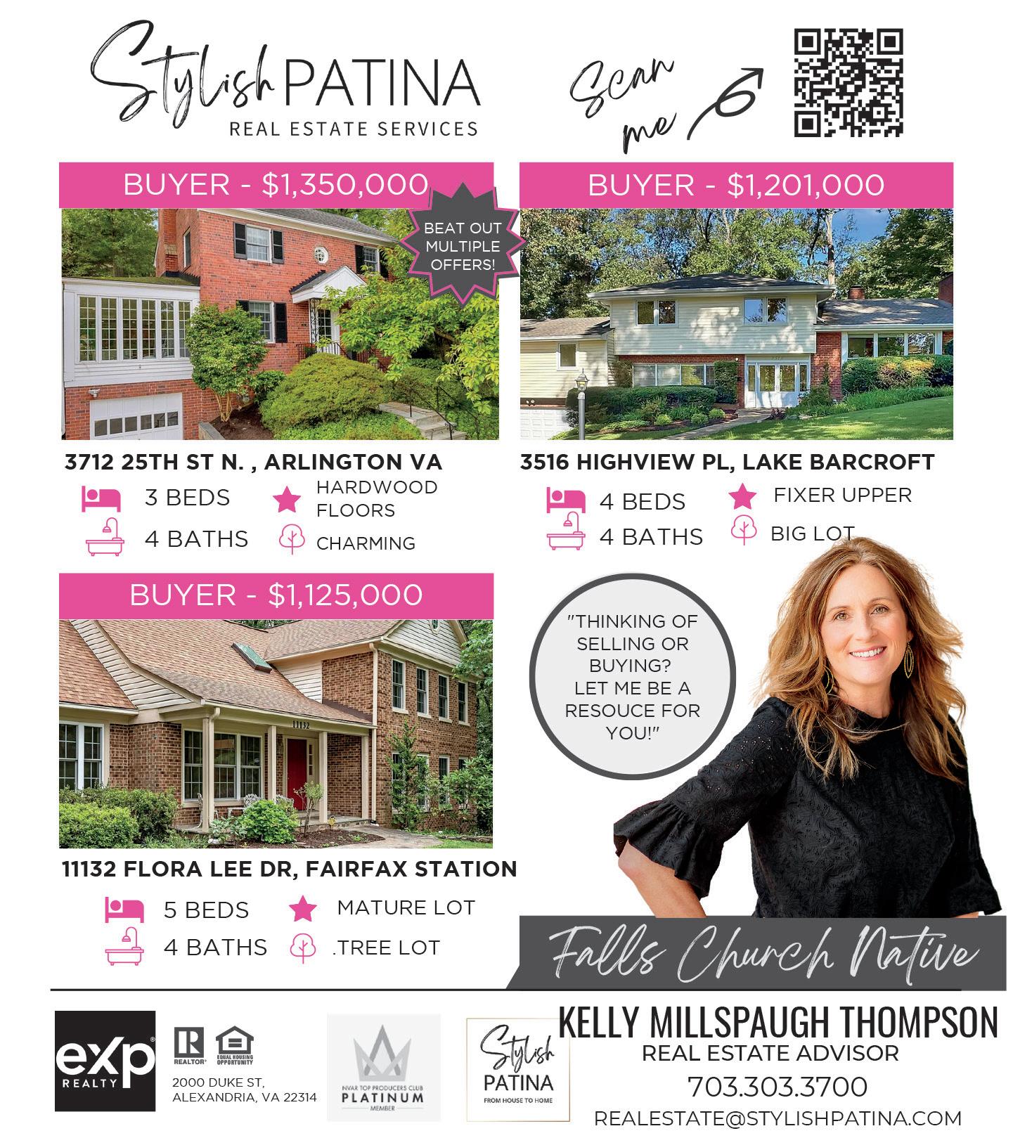 As a Falls Church City native and small business owner Kelly strives to make buying and selling less overwhelming for her clients. Kelly opened STYLISH PATINA her Home+Gift shop in 2012 and has been a licensed Realtor since 2019. She has been recognized as a Platinum Producer by NVAR and Top Producer by Arlington Magazine. Kelly is known for her cutting edge marketing, business savvy and concierge approach to Real Estate. She and her team are able to manage all aspects of buying and selling a home: home prep, liquidation, organization, renovation, moving, and design. This has proven to be a unique and highly sought after combination of skills. Kelly has a passion for helping folks as they transition through life stages - needing a larger home for a growing family or downsizing. Kelly is a mother of 5 and understands the stress of moving with children and the overwhelm of transitioning out of a home you raised your family in when it comes time to simplify. These big life transitions are where she finds the most joy in helping families. If you are looking for a Realtor with compassion and commitment to making your next Real Estate transaction less stressful contact Kelly, 703-303-3700.