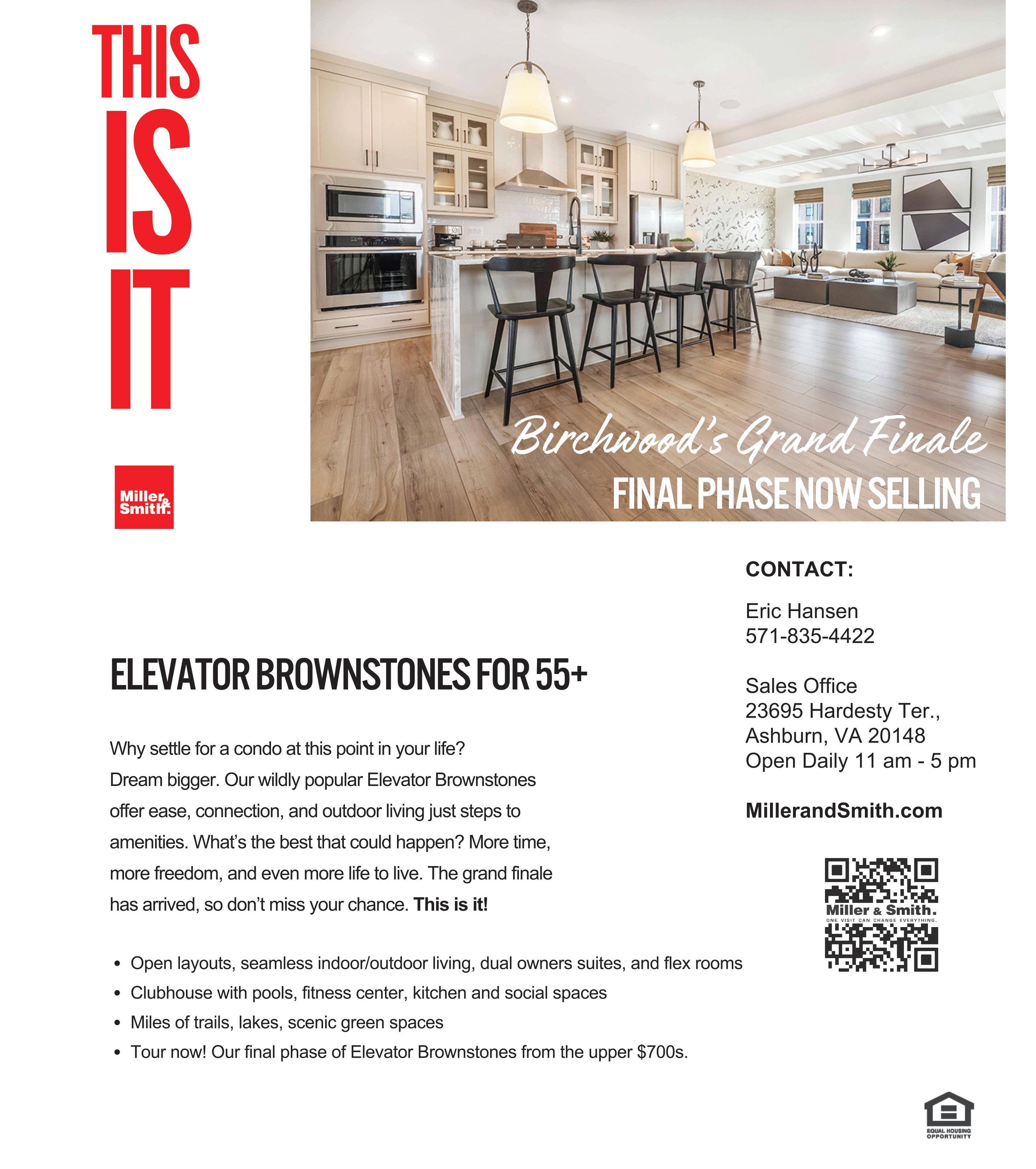 As Sales Manager for the Brownstones at Birchwood by Miller & Smith, Eric Hansen brings expertise, honesty, and a genuine passion for helping buyers feel confident in their next chapter. He takes pride in guiding homeowners toward beautifully designed spaces that offer comfort, convenience, and a true sense of coming home. millerandsmith.com/birchwood.