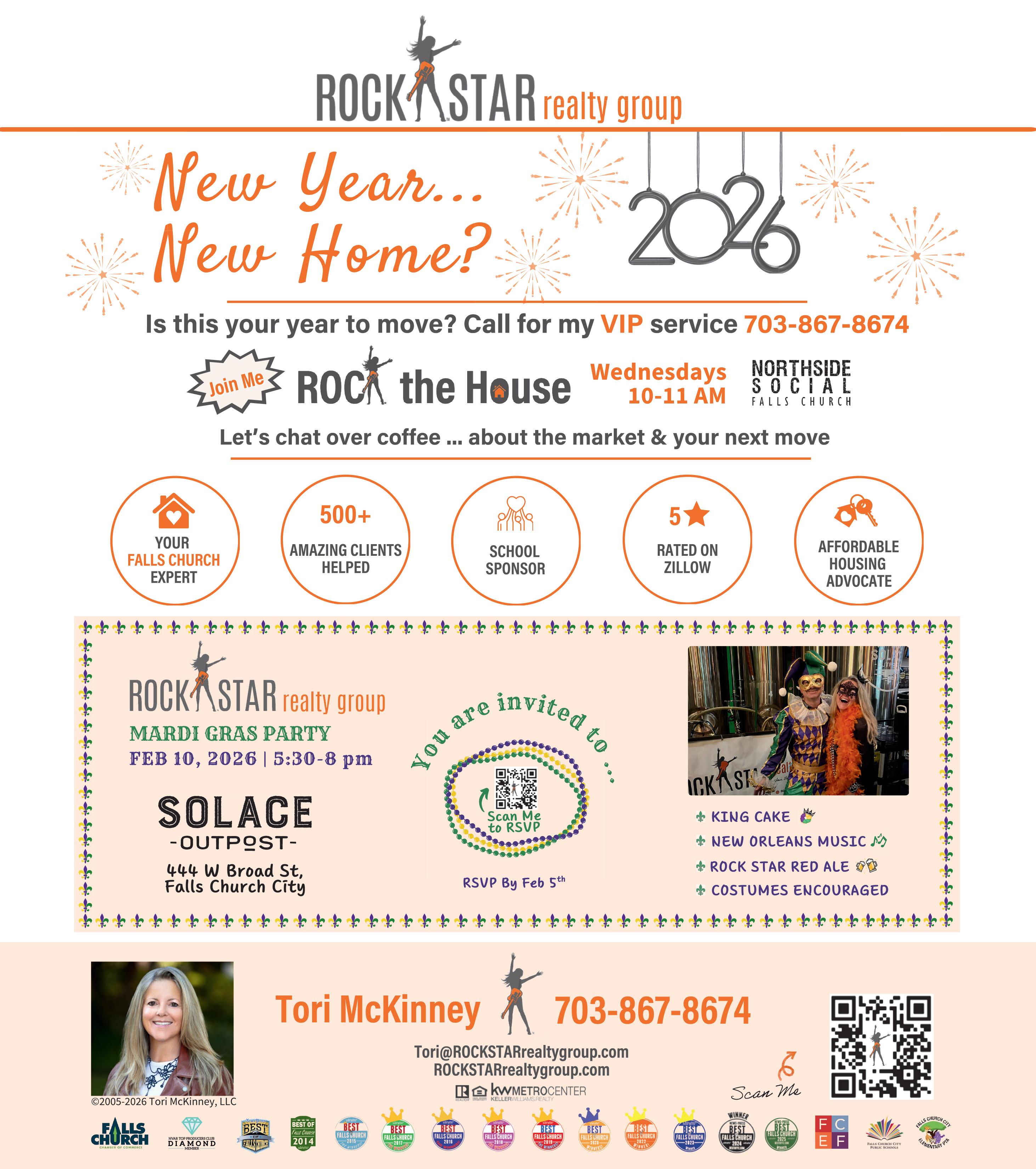 As the new year begins, it’s the perfect moment to embrace fresh starts and new possibilities. While winter is often thought of as a slower season, the real estate market is alive with opportunity—especially for buyers and motivated sellers ready to make a move. We are seeing an increase in inventory, which means: For buyers, this creates more choices, better negotiating power, and the ability to make more confident decisions. For sellers, it signals stability and motivated buyers—especially for homes that are well-priced and well-presented My ROCK STAR realty group and I are your go-to resource for all-things real estate. Stop by Northside Social, Falls Church, on Wednesdays | 10:00–11:00 AM for our ROCK the House coffee to talk more. We’ll buy you a cuppa!