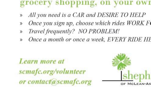 The Shepherd’s Center of McLean-Arlington-Falls Church (SCMAFC), an all-volunteer nonprofit organization, is seeking additional volunteers to support its mission of providing free trans-