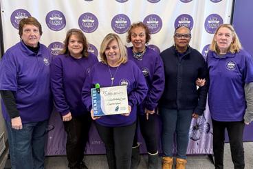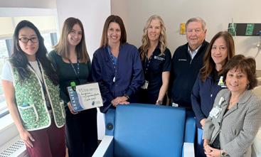 Pictured, from left to right, are Development Coordinator Samantha Hong, Major Gifts Officer Emily Tome, Charge Nurse Melissa Le, BSN, RN, C-EFM, Charge Nurse Jennifer McCrory, MSN, RNC-MNN, CEO Jim Brexler, FACHE, Pauline Pesce, BSN, RNC-OBClinical Manager, Maternity, and Director of Maternal Child Services Carol Chwal, DNP, MBA, RN, NEA-BC.
