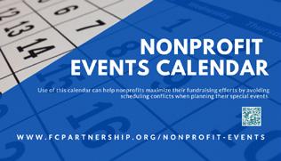 While on the web site, the Nonprofit Events Calendar can help nonprofits maximize their fundraising efforts by avoiding scheduling conflicts when planning their special events. To submit an event to this calendar, visit www.fcpartnership.org/nonprofit-events.