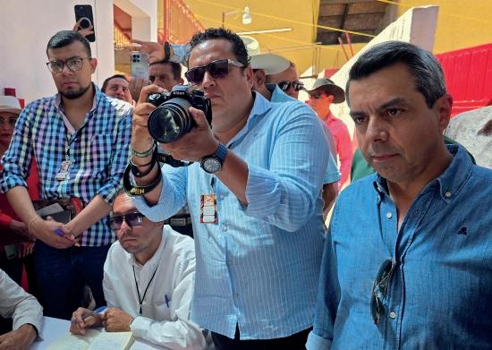 En la mesa del presídium estuvieron el matador Juan Pablo Sánchez, y los no villeros Eduardo Neyra y Axel López, además de Juan Pablo y Sebastián Co rona López, integrantes de la empre sa; la maestra Lorena Díaz, presidenta del DIF, y Óskar Ruizesparza, director de Fomento Cultural de la Tauroma quia Hispanoamericana, quien presen tó la Semana Cultural que se realizará del lunes17 al viernes 21 de febrero y forma parte de las actividades alrede dor del Carnaval.