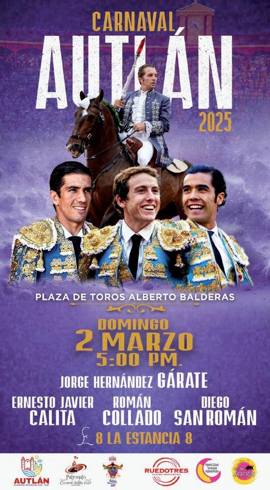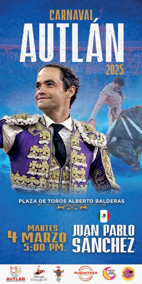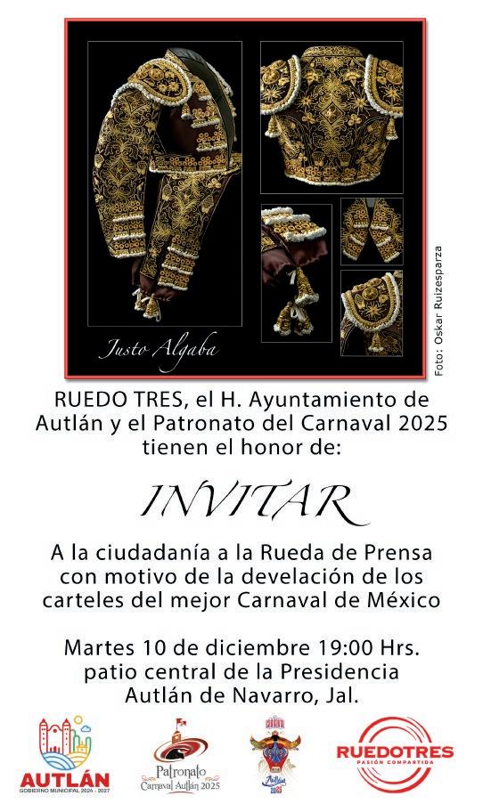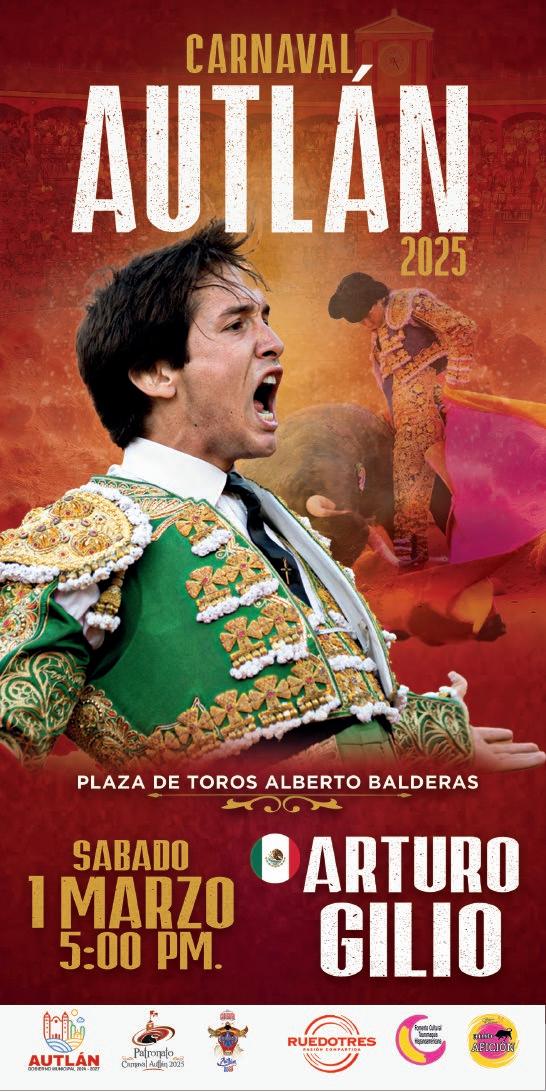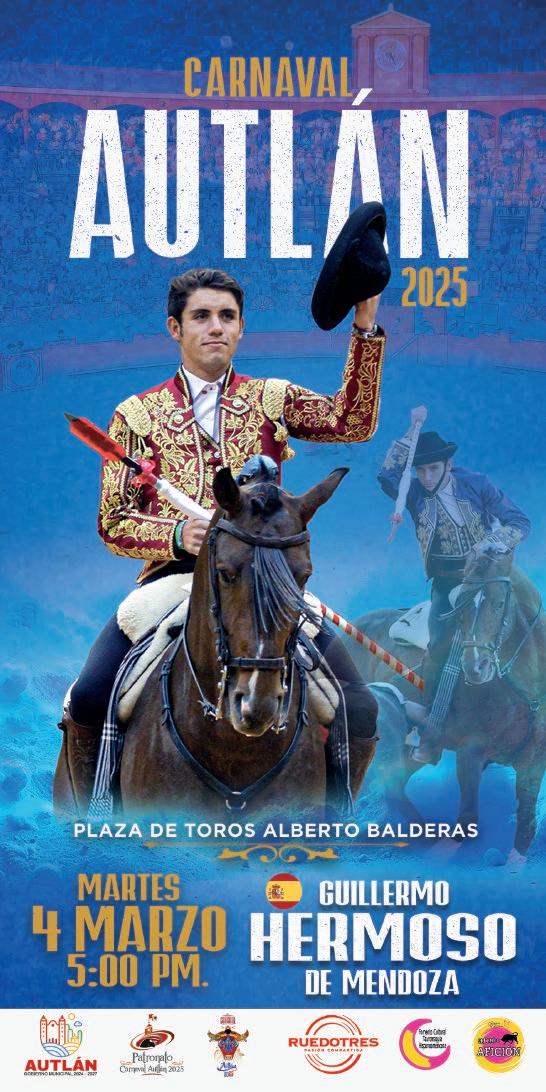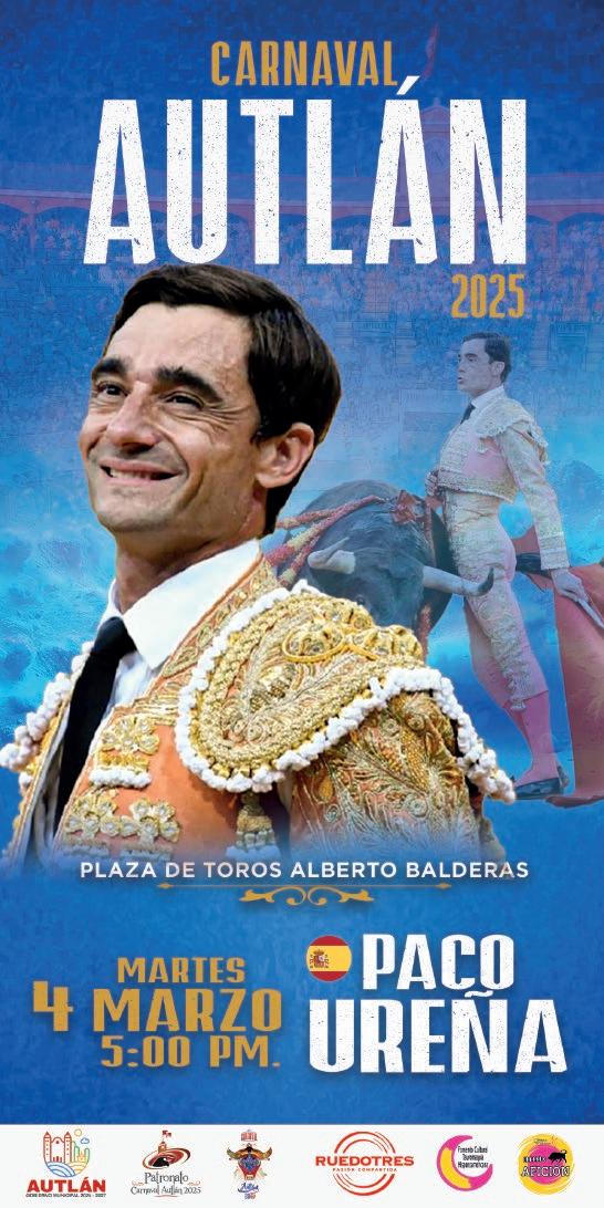 “Quiero expresar un sincero reconoci miento y admiración a la empresa Rue do Tres por su dedicación a la difusión de la tauromaquia, nos ha permitido llevar a un serial taurino muy relevante, cuyos carteles son dignos de las mejores plazas de México, y estamos agradecidos a esa pasión por los toros y transmitir esta cultura. Así que aquí los esperamos con la hospitalidad y la alegría que nos caracteriza a los autlenses”, dijo el presidente del Patronato del Carnaval 2025, el maestro Vidal Paz Robles.