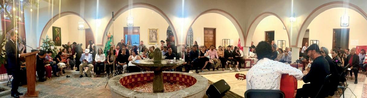 Un centenar de personas coincidieron en el patio central de la casa, en la que pudieron escuchar los discursos inaugurales. En primer lugar, Óscar Ruiz Esparza, director de Fomento Cultural Tauromaquia Hispanoamericana, quien en representación del ganadero Juan Pablo Corona, expresó los motivos de la empresa taurina para realizar la semana cultural, que son principalmente promover los valores de la fiesta brava, haciéndolos llegar a jóvenes para que se formen como nuevos aficionados. También agradeció a las autoridades y a Federico Paz por la generosidad de abrir las puertas de su casa.