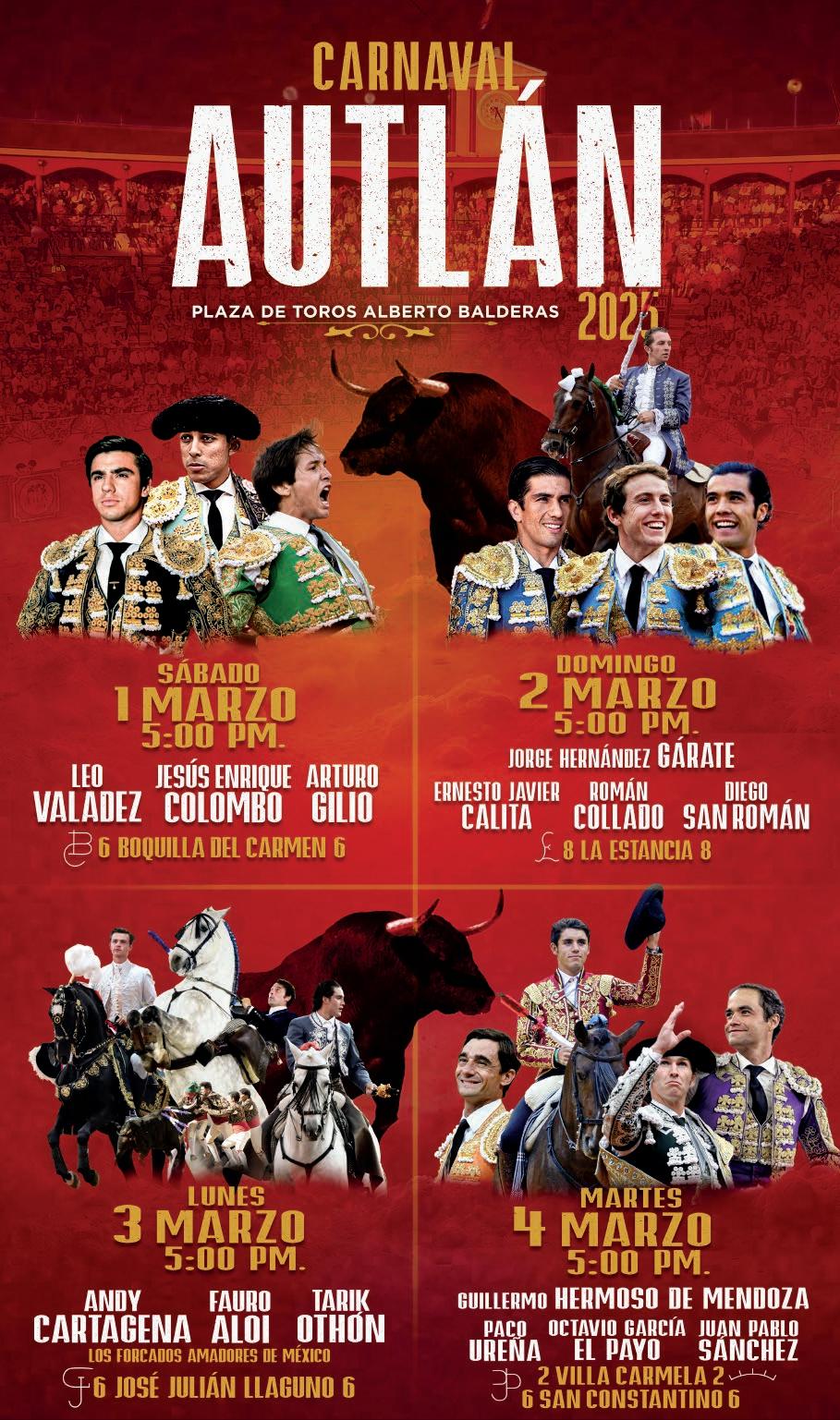 Portadas de las cuatro corridas formales del Carnaval TaurinoAutlán 2025