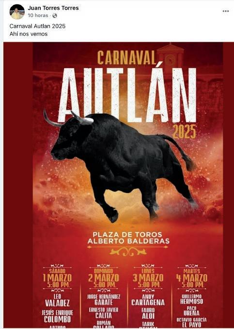 “Como es costumbre en esta plaza, el compromiso de traer encierros bien presentados forma parte de la forma de vivir la Fiesta en Autlán, a través de un carnaval de tanta tradición que esperemos sea triunfal y nos deje muchas satisfacciones”.