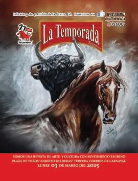 Agradecemos a la revista “LA TEMPORADA” dirigida por el matador de toros Raúl Gómez “Campero” por la difusión en su prestigiada revista, en todas sus publicaciones de los carteles de Autlán de Navarro, Jal. 13 Dic. León, Gto., 14 Dic. León, Gto., 05 Ene. Autlán, Jal., 05 Ene. Tlaltenango, Zac., 12 Ene. Arandas, Jal., 17 Ene. El Grullo, Jal., 19 Ene. León, Gto., 25 Ene. León, Gto., 31 Ene. Guadalajara, Jal., 01 Feb. Guadalajara, Jal., 01 Feb. León, Gto., 02 Feb. Guadalajara, Jal., 08 Feb. León, Gto., 11 Feb. Villa de Álvarez, Col., 14 Feb. Guadalajara, Jal., 15 Feb. León, Gto., 15 Feb. Guadalajara, Jal., 16 Feb. Guadalajara, Jal., 16 Feb. Aguascalientes, Ags., 18 Feb. Villa de Álvarez, Col., 22 Feb. León, Gto., 23 Feb. Guadalajara, Jal., 23 Feb. Aguascalientes, Ags., 01 Mar. Autlán, Jal., 02 Mar. Autlán, Jal., 03 Mar. Autlán, Jal., 04 Mar. Autlán., 27 publicaciones.