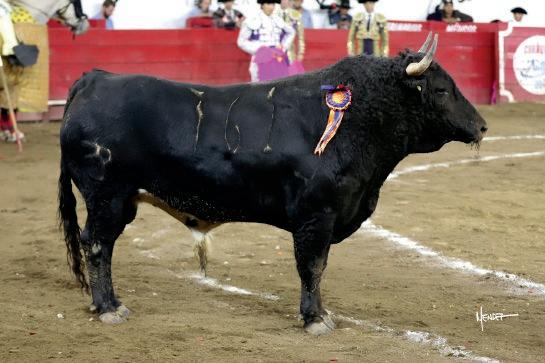 2.- Mejor toro – Toro lidiado con el nombre de ´´NOBLE´´ No. 480 con 519 kgs. Negro entrepelado de la ganadería de