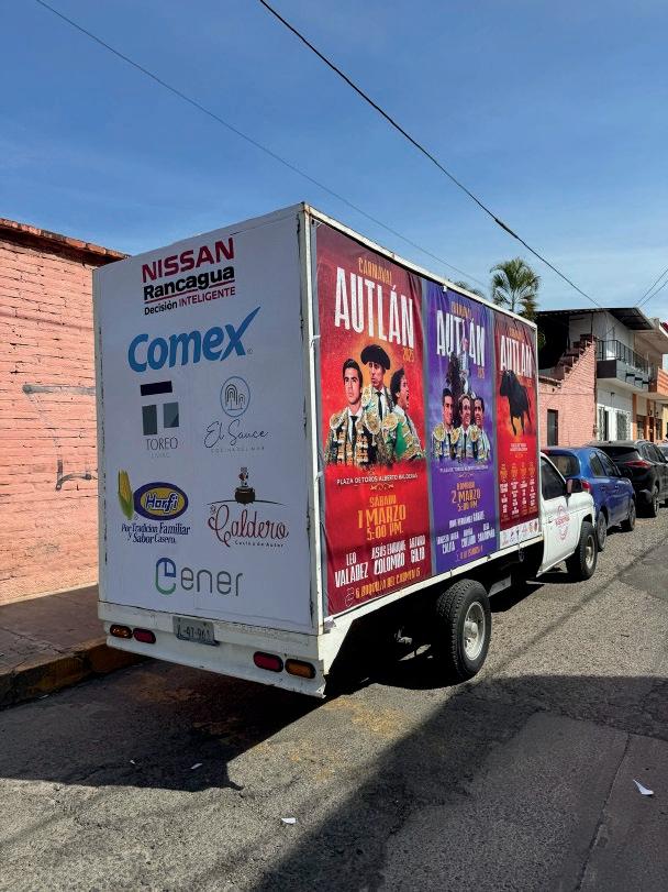 Presencia en 450 pendones de 70x150 cms., 50 de 1 x 2 metros, 10 Espectaculares, 10 de 122x244 cms., 12 Arañas de 70x150 para entrada a restaurantes, 4 Tótems de 122x244 con cuatros costados, 15 días de promoción en Radio Costa y Fiesta Mexicana con 10 spot por día, 22 días valla en movimiento y Perifoneo en zona Autlán 30 km. a su alrededor en agencias, delegaciones y municipios vecinos, en el Reverso de los boletos y 8,000 Volantes tamaño carta en couche impresos por un lado los cuatro carteles y el reverso con información de la vestimenta del traje de luces, 20 Restaurantes centro de mesa con los cuatro carteles, 15 días de presencia en pantallas con video de los carteles en el centro del callejón del carnaval y dentro de la plaza, 6 entrevistas en Radio Costa, Fiesta Mexicana y Radio Universidad, participación en los desfiles de Anuncio de Carnaval del Entierro del Mal Humor con más de 40,000 Autlenses que abarrotaron las calles por donde se llevó a cabo.