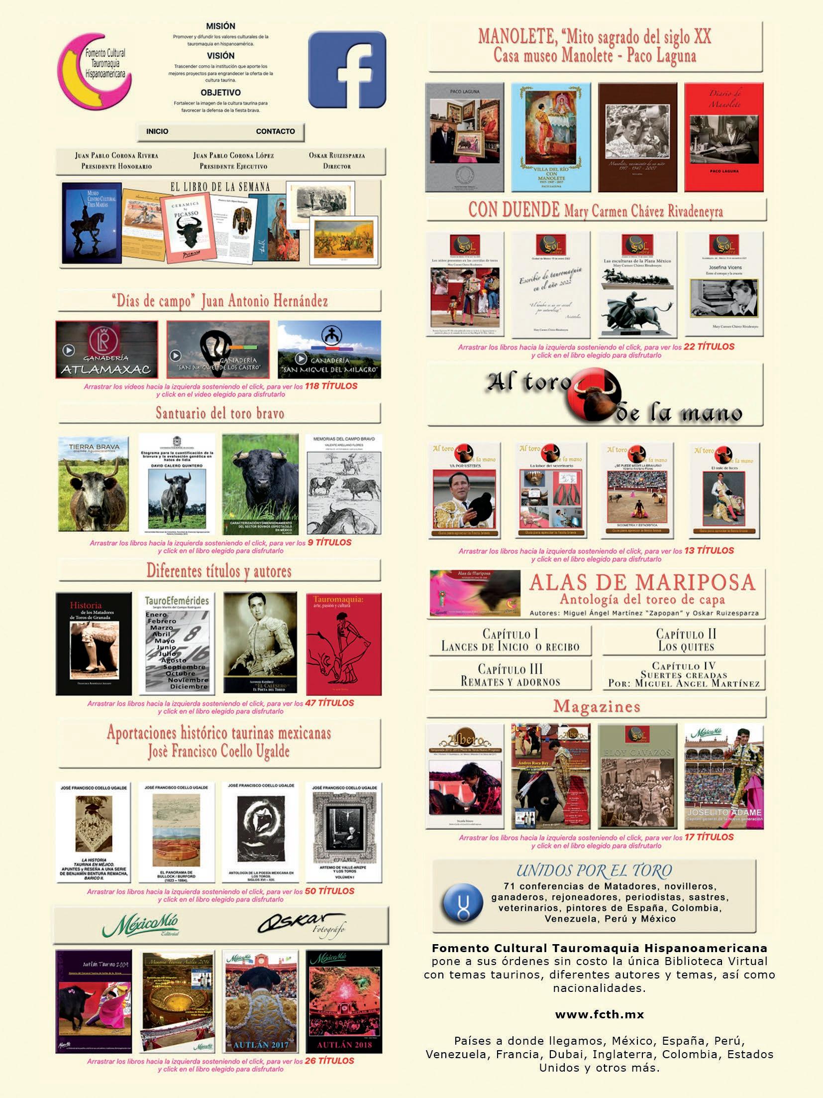 Esta es una publicación de Fomento Cultural Tauromaquia Hispanoamericana, los derechos son reservados y propiedad de la FCTH, la reproducción total o parcial, por cualquier medio, ya sea impreso, digital, electrónico o calcado será sancionado conforme a la ley autoral.