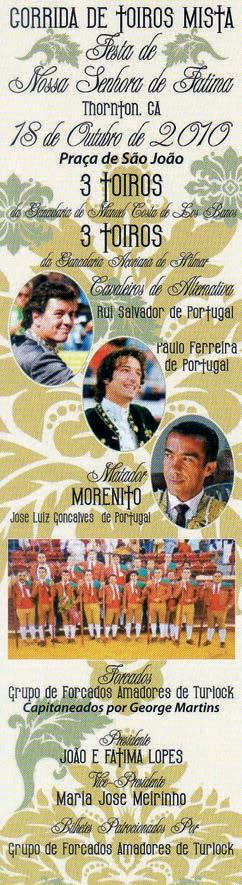 Later on, other groups appeared - Grupo de Forcados de Escalon, Grupo de Forcados Amadores de Tulare, Grupo de Forcados do Sul da Califórnia and Grupo de Forcados Amadores do Aposento de Turlock.