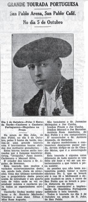 Nesta terra da América, mais propriamente na Califórnia, as Corridas de Toiros da responsabilidade de Portugueses só começaram no princípio do século passado, mas a forcadagem é muito recente, porque naquele tempo, talvez até à década dos 70’s do século passado, todas as corridas eram com aficionados que gostavam de “brincar” com toiros.