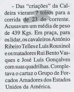Num cartel de uma Corrida na Terceira com 9 toiros em 1894 dizia-se o seguinte: “Um valente grupo de moços de forcados fará as pegas que o inteligente determinar”.