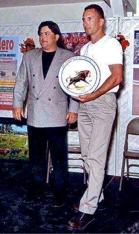 George Martins Jr., the forcado who performed the brilliant pega, received so far the biggest prize of his life, precisely a month from receiving from the hands of his father-GeorgeMartins-thepositionofCabo(Captain)of theGrupodosForcadosAmadoresdeTurlock.