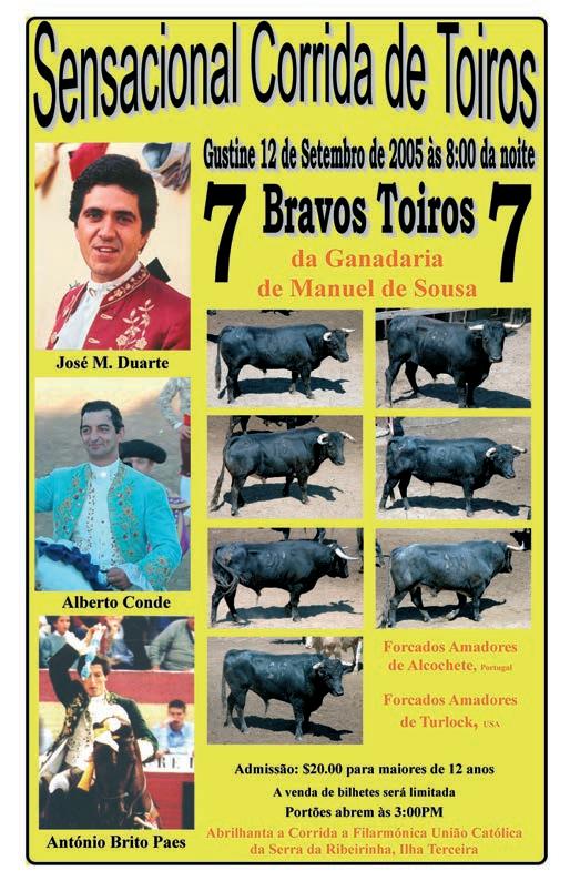 In 1976, Manuel de Sousa, the ganadero of Pico dos Padres, encouraged the formation of a group and he even asked our young forcados from Terceira Island to go there and train the future forcados.
