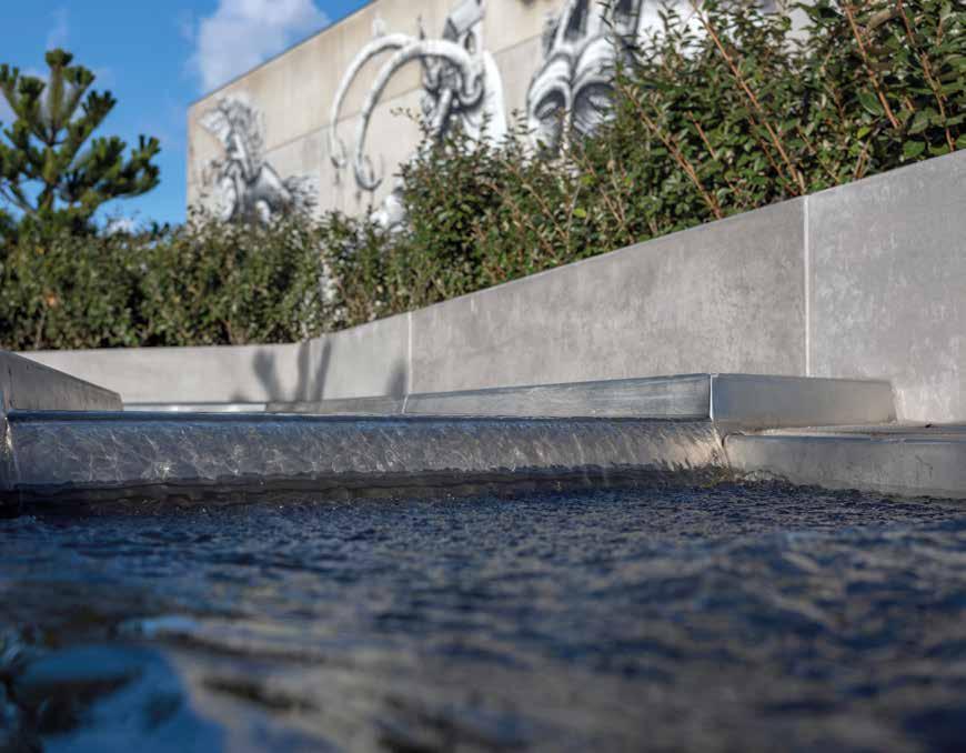 « Gestion durable de l’eau » regroupe toutes les solutions, depuis le pavage drainant jusqu’aux solutions en béton préfab sur mesure.