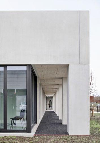 Het project bestaat uit verschillende volumes, waarvan fases 1 en 2 gerealiseerd zijn. Een glazen koker fungeert als verbinding van de twee volumes. David Vancanneyt: “De receptie