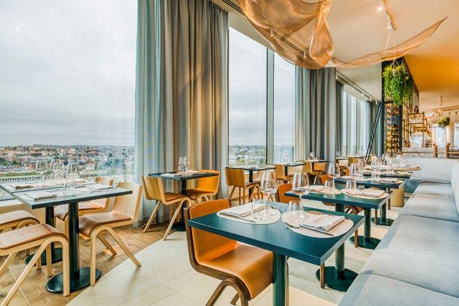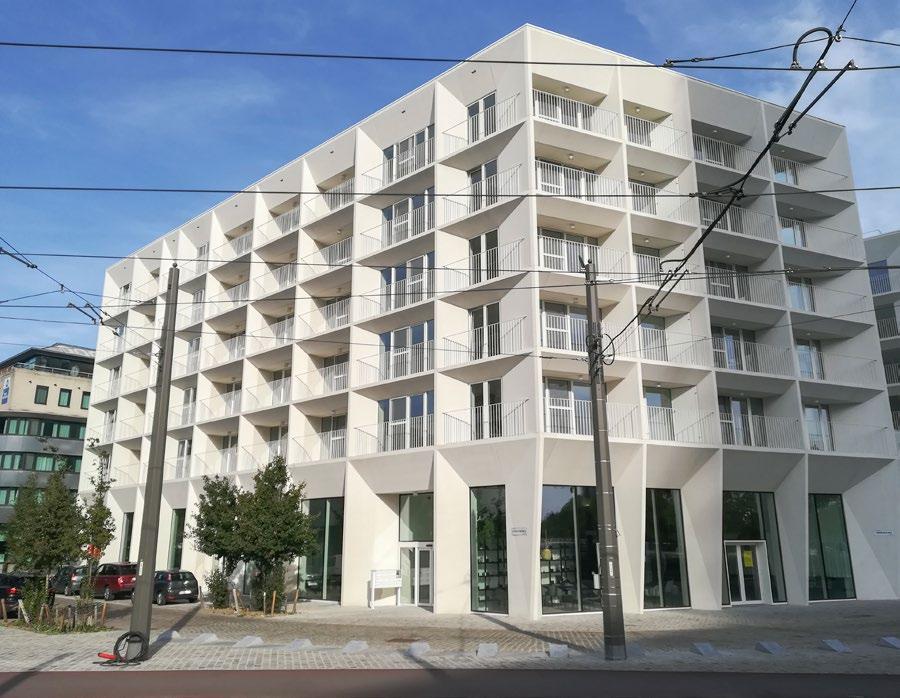 installations de travail, d'hébergement et de loisirs. Le design ludique, issu du génie créatif de Buro Architectuur, est un clin d'œil au surréalisme belge. Il comprend 220 chambres d'hôtel, un restaurant rooftop et un skylounge, des installations de fitness et de wellness, ainsi que des salles de réunion. Et grâce à sa hauteur, le bâtiment offre une vue