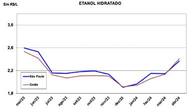 EVOLUÇÃO DOS PREÇOS DO ETANOL HIDRATADO (em R$/L)