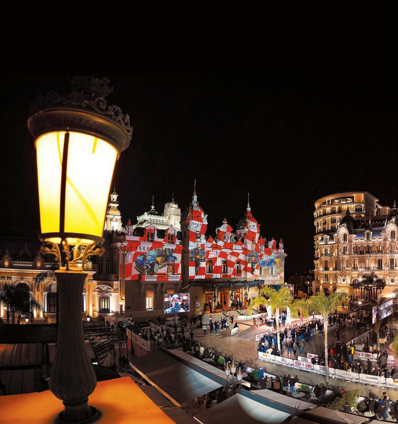 Bijoud’architecturebelle-époquesoulignéparl’esthétique épuréedesaplacehomonyme,leCasinodeMonte-Carlo avaitrevêtuunhabitdelumièreauxcouleursdel’épreuve crééeen1911,dansl’idéed’inciterlesamateursde modernité,d’avantgarde,afortiorid’automobile,àtraverser l’Europepourrejoindresessalonsfeutrés,bienplus chaleureuxquelesroutesterreusesetgravillonnéesdu nouveausiècle.
