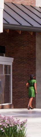 • Traditional and modern materials tie the streetscape to the property’s architectural character