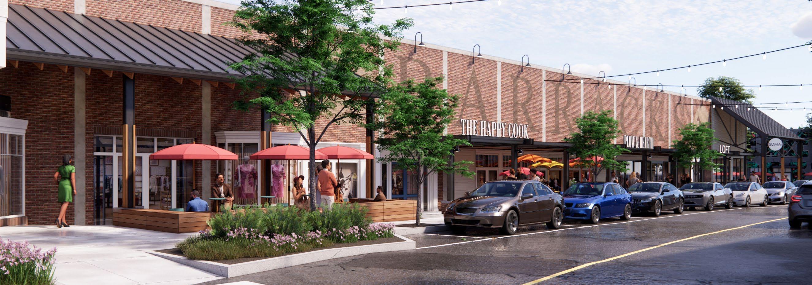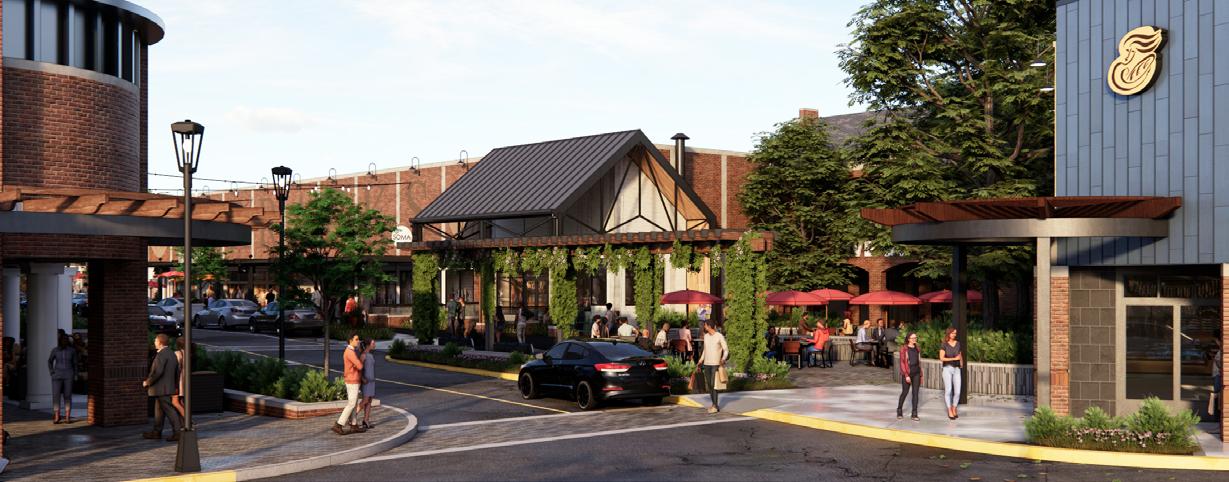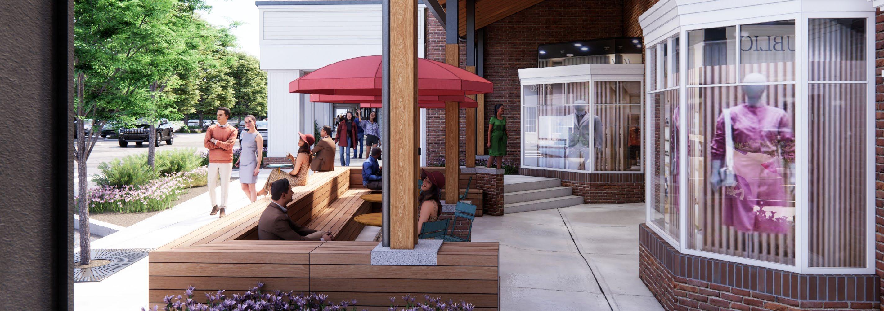 • Added seating, specialty lighting, art, and landscaping create a welcoming environment for shoppers