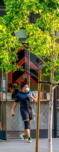 Park Valencia, the largest open space on Santana Row, features a lush central lawn and a children's play area, making it an ideal spot for family picnics and gatherings. Santana Row Park, located near the Row's northern end, is a picturesque space that hosts many events throughout the year, including live music, festive tree lighting ceremonies, and monthly Kid's Club. Meanwhile, the plazas near the 700, 300, and 500 offices serve as gathering spots for visitors, residents, and office employees with ample seating, fountains, and landscaped walkways. All of these spaces play a crucial role in fostering connectivity and community engagement by providing a welcoming and accessible space for people to gather, relax, and enjoy the company of others.
