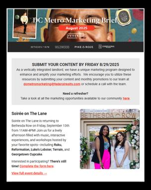 We feature as many merchant requests as possible within the cadence of our ongoing marketing campaign Reach out to us at any time at dcmetromarketing@federalrealty com