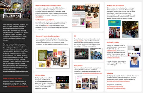 Each property has a dedicated website to showcase instore happenings and store information, including address and phone number Submit requests to dcmetromarketing@federalrealty com