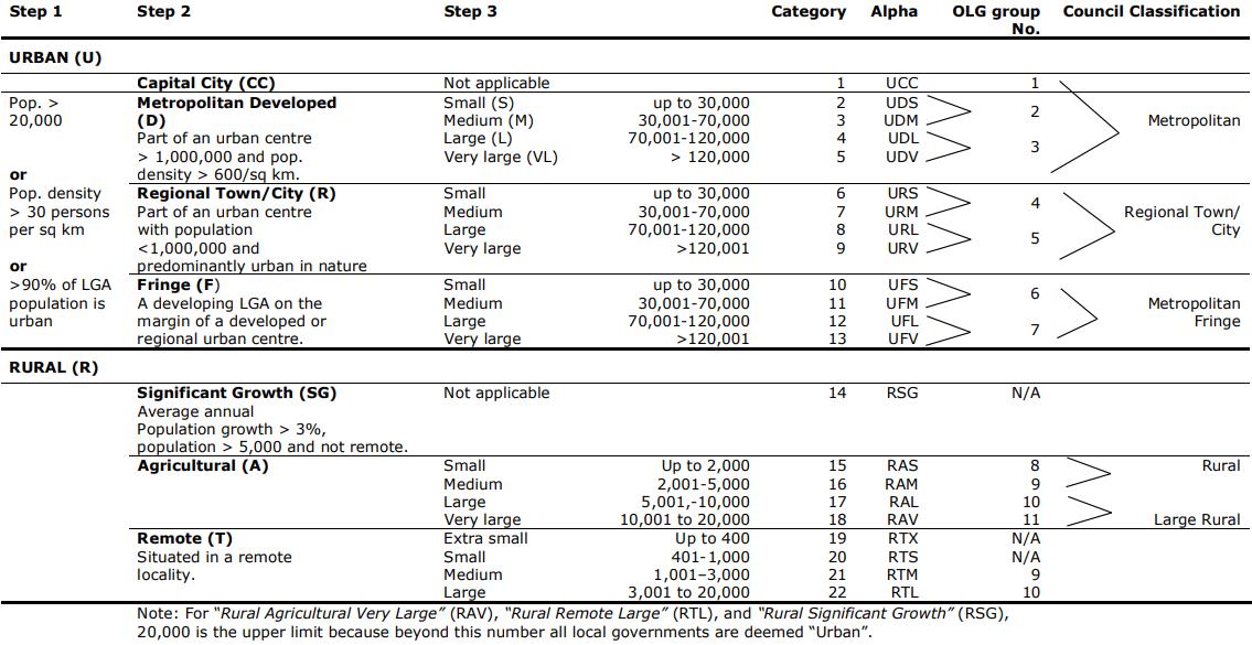 3 Australian Classification of Local Governments and OLG group numbers, page 1.