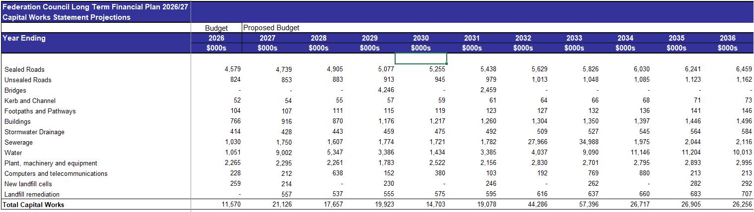 Federation Council Long TermFinancial Plan 2026/27 - 2035/36 Capital Works Statement Projections