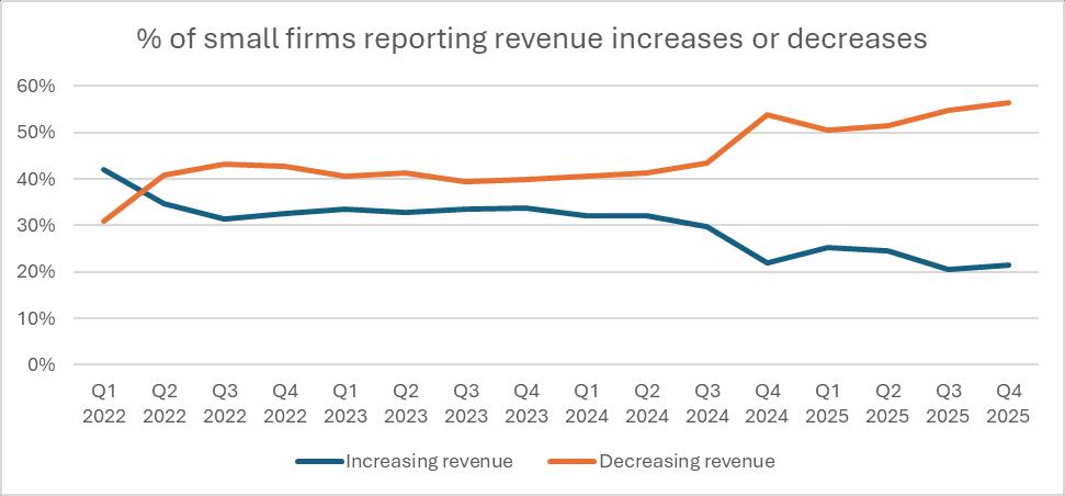 In the past four years, while costs have been rising at an unprecedented rate, the number of firms reporting decreasing revenues has overtaken the number of firms reporting increasing revenues.