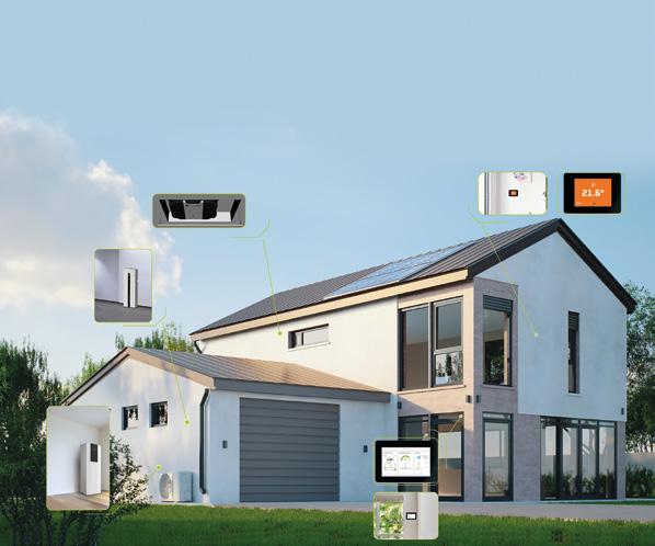 Un sistema integrato di gestione del comfort e dell'energia per applicazioni residenziali che comprende: pompe di calore per il riscaldamento, il raffrescamento e la produzione di acqua calda sanitaria, sistema di rinnovo e purificazione dell'aria, accumulo di energia elettrica, termostati intelligenti, termostati di controllo, terminali ambiente, sistema di gestione e controllo centralizzato, Clivet Eye App per la gestione remota tramite smartphone.