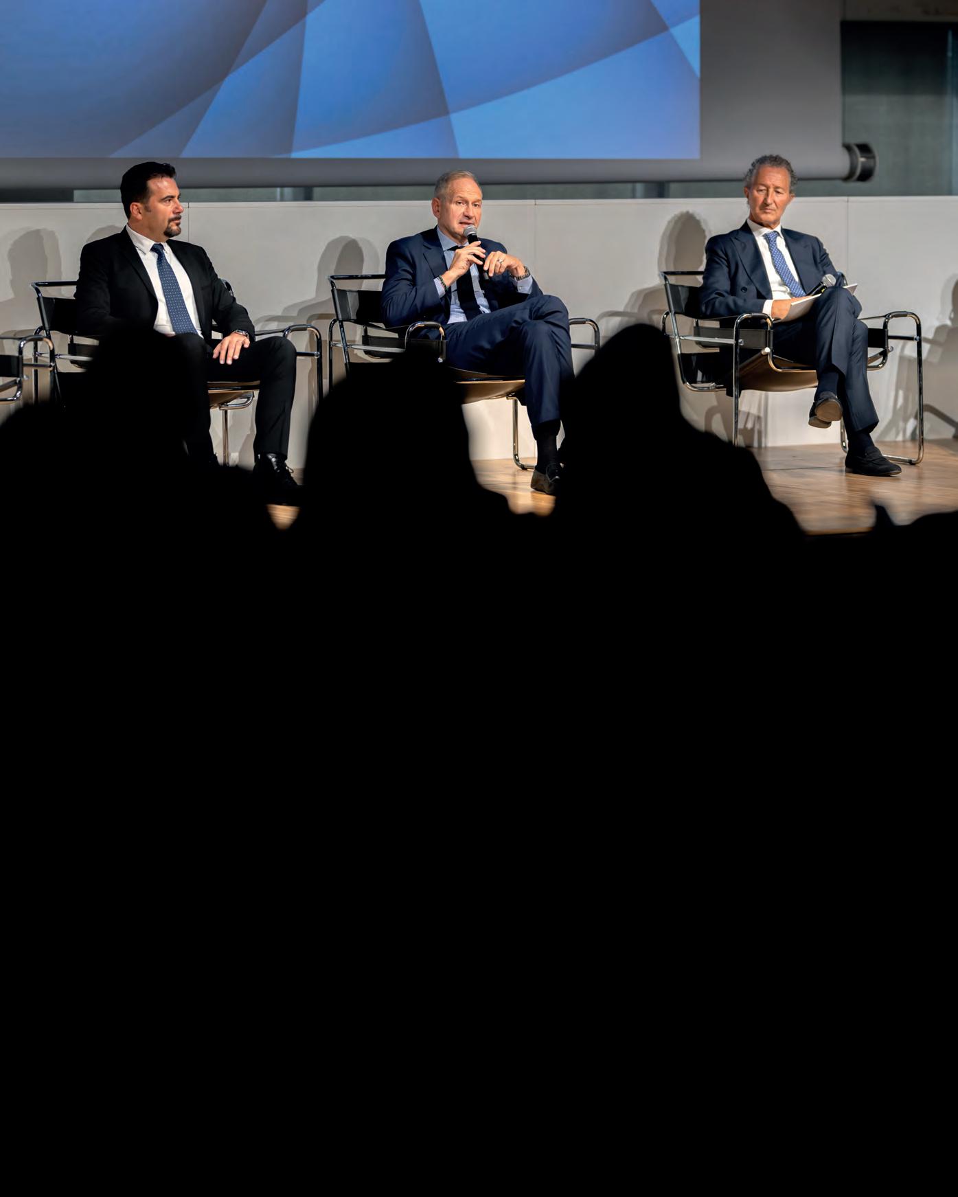 Sopra, da sinistra, Antonio Portaccio e Alessandro Fontana; nella pagina seguente, da sinistra, Vittorio Cino e il moderatore Giuseppe Rotolo