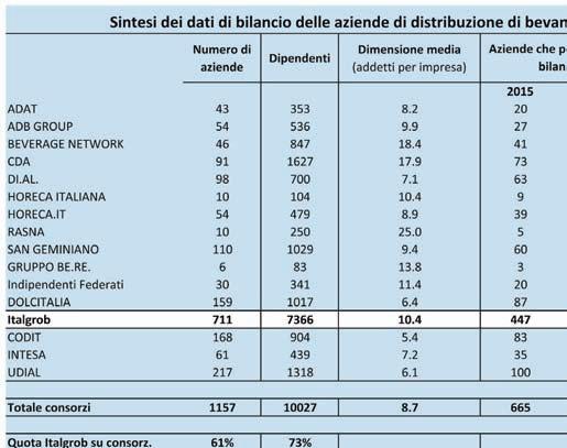 Pertanto, in termini numerici il campione rappresenta il 32,6% dell’universo, e in termini ponderati il 63%. L’universo da cui è stato selezionato il campione è costituito dal data base Cerved relativo alle imprese con codice ATECO 46.34, 46.34.1 e 46.34.2, pari a 3.004 distinte Società. L’unica eccezione a questa base dati riguarda il capitolo sul mondo del lavoro dove, per carenza oggettiva di dati, si è deciso di utilizzare l’universo della banca dati iStat.