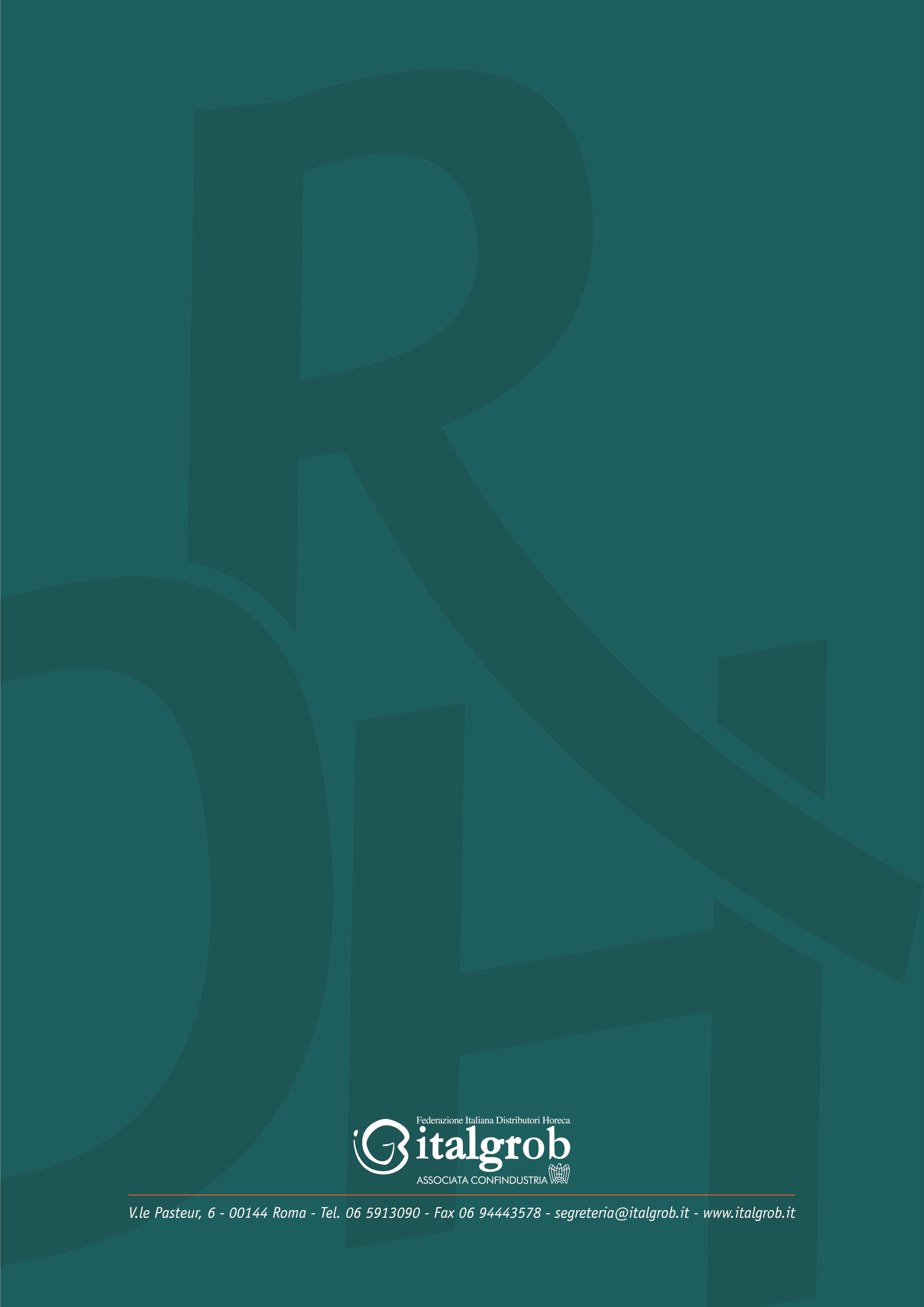 Tutti i diritti di riproduzione di testi e foto, in qualsiasi forma, compresa la messa in rete, sono riservati. Per qualsiasi utilizzo è necessaria un’autorizzazione scritta da parte della Federazione Italgrob. Ai sensi dell’Art. 10 della L. 675/1996, le finalità del trattamento dei dati relativi ai destinatari del presente volume consistono nell’assicurare un’informazione tecnica, professionale e specializzata a soggetti identificati per la loro attività professionale.