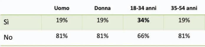 giovani (34%) mentre non si registrano variazioni di genere tra maschi e femmi