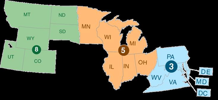 Map of USEPA Regions 3,5 & 8