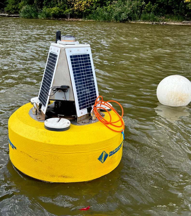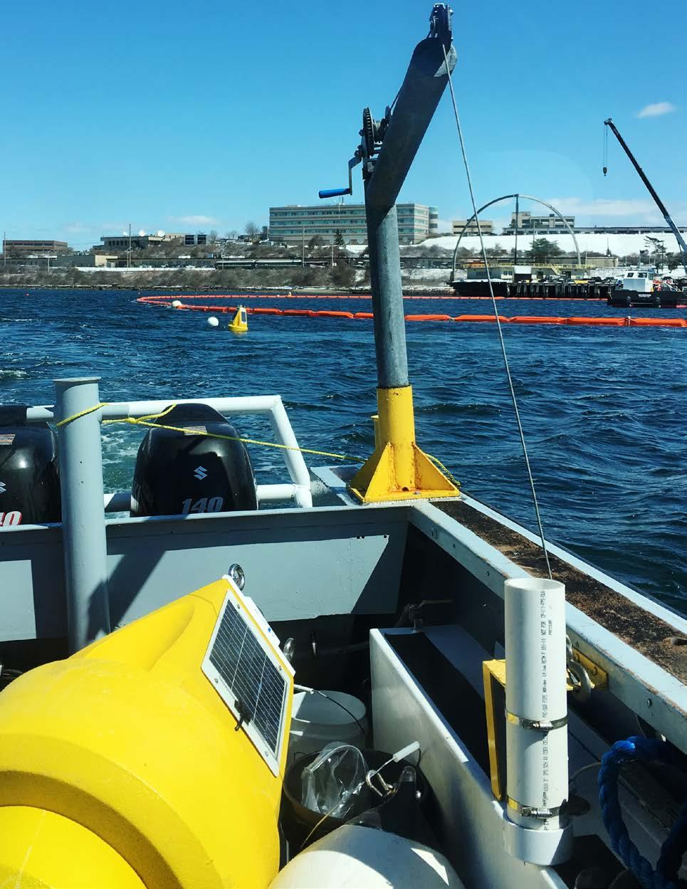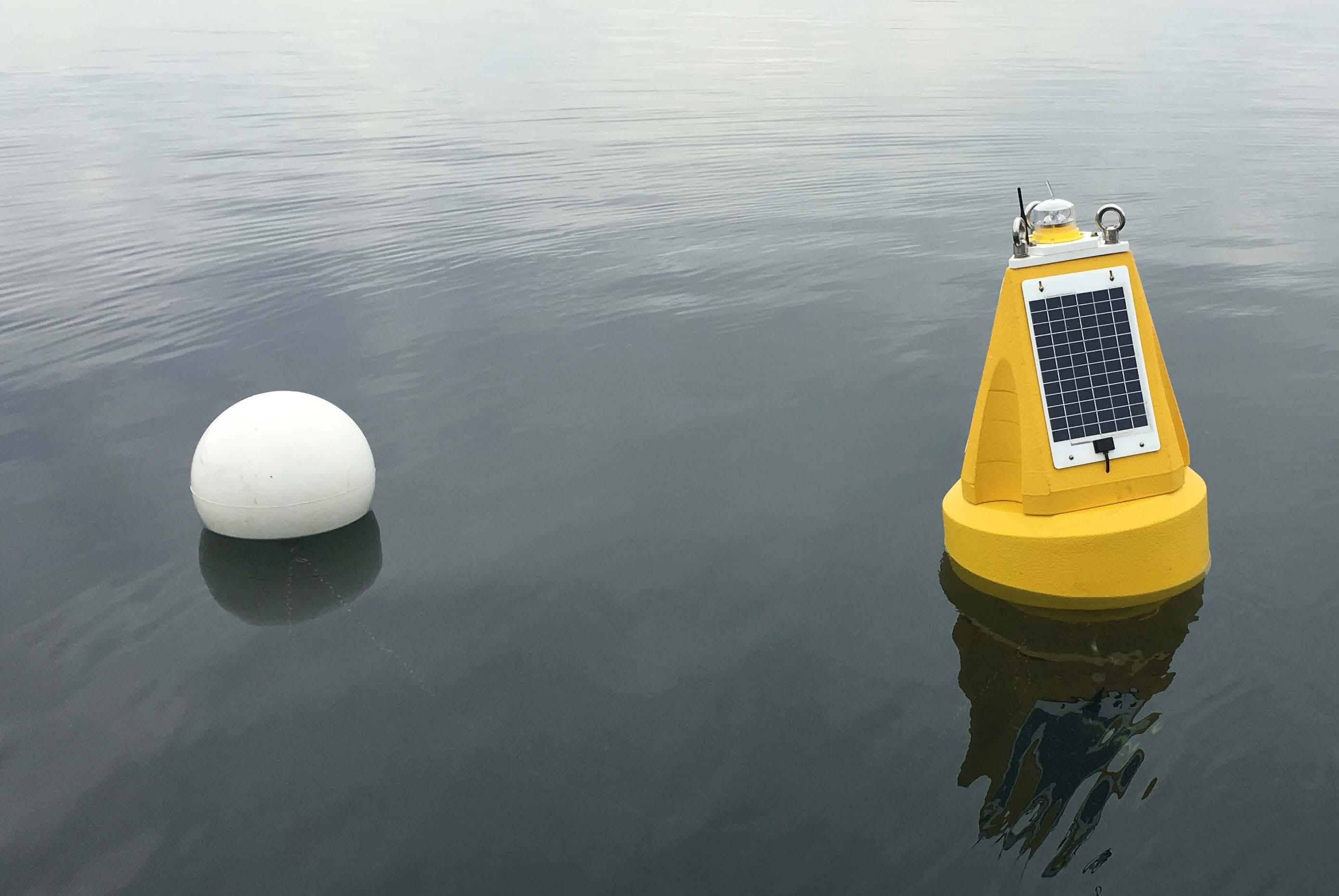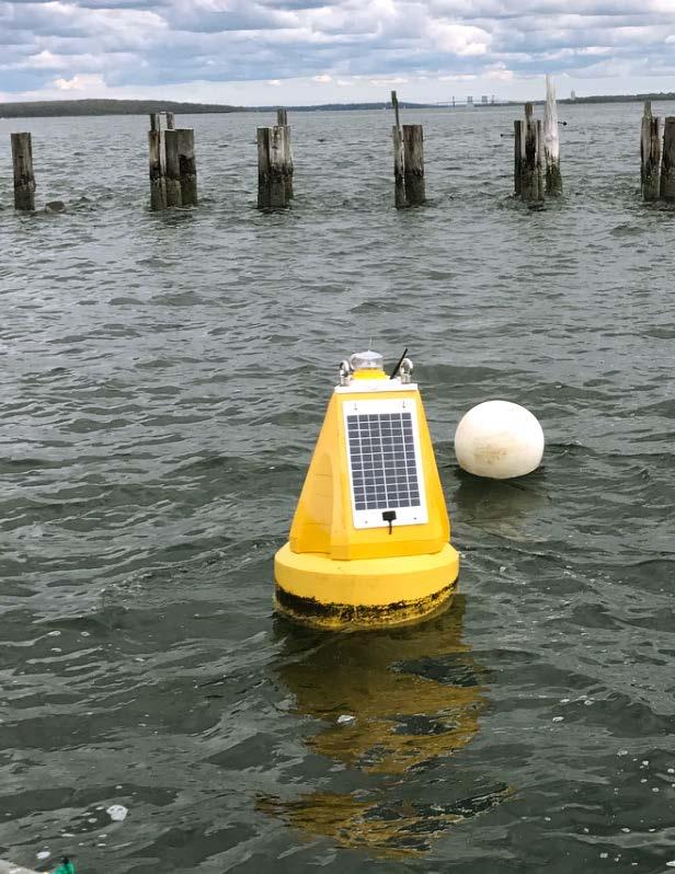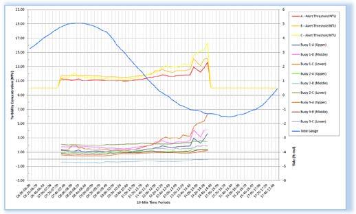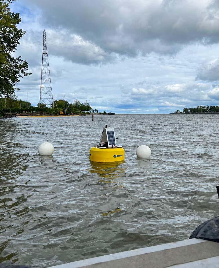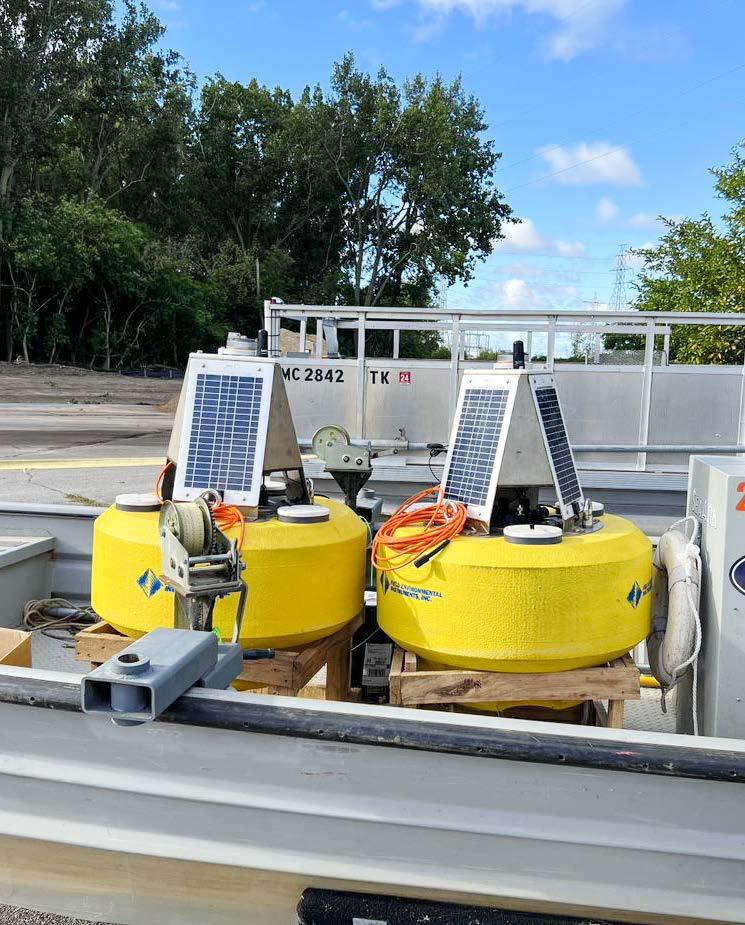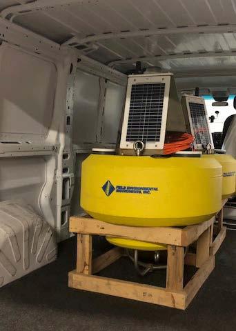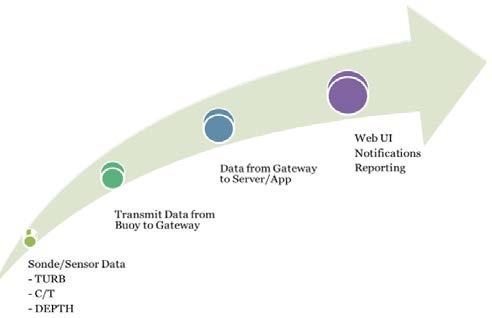 Three daisy-chained YSI EXO 2 long-term monitoring water quality sondes were deployed from a solarpowered buoy to depths of 5,15, and 30 ft. Each sonde was calibrated following stringent procedures to ensure accuracy at low NTU values found in the open waters at this project site. The buoy also contained a radio and or cellular transceiver that sent real-time data from each sonde to FDS Connect®’s software and was then viewable to a remote user.