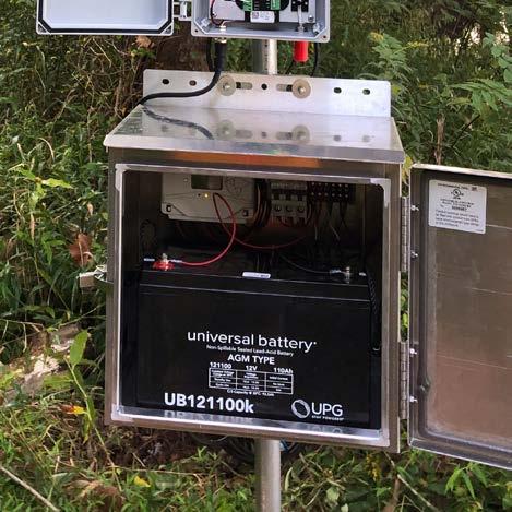• Powered by three 10-watt 12 VDC solar panels