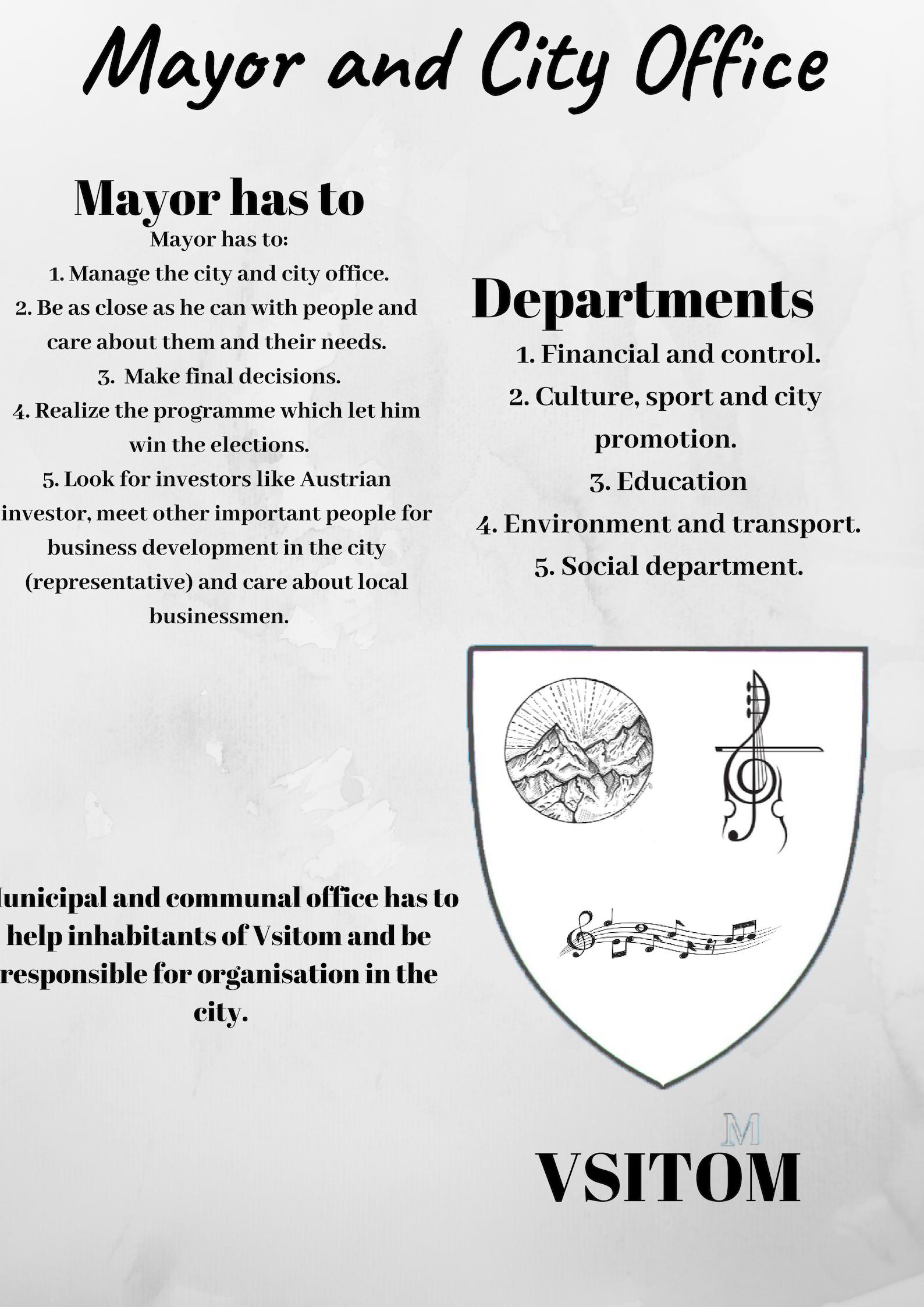 Gra symulacyjną SIMmyCITY pod tytułem: The Vsitom! Gra polega na symulacji podejmowania decyzji w mieście. Nasz wymyślony Vsitom jest modelowym miastem z różnymi grupami interesów, potężnymi problemami, ale także wielkimi szansami na rozwój. Zupełnie jak nasze miasta: Bytom i Vsetin. Grę najlepiej rozegrać w szkole, przy większej udziale uczestników, ale da się także w ramach jednej klasy (po prostu zmniejszcie ilość grup interesów!). Gra jest także świetnym ćwiczeniem językowym - założenia są przygotowane w języku angielskim. Projekt był realizowany w ramach programu Erasmus+