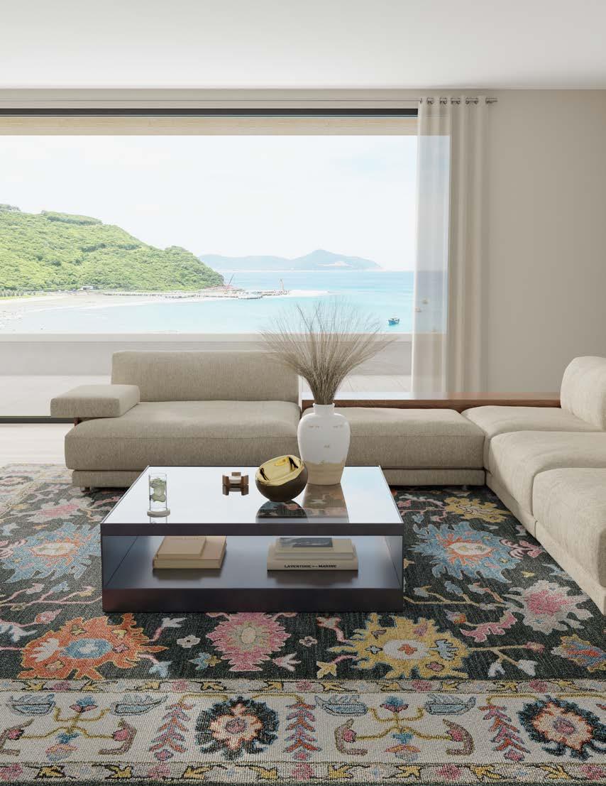 Traditional rug designs such as Oushak is making a big comeback but in modern colors and paired with transitional furniture.