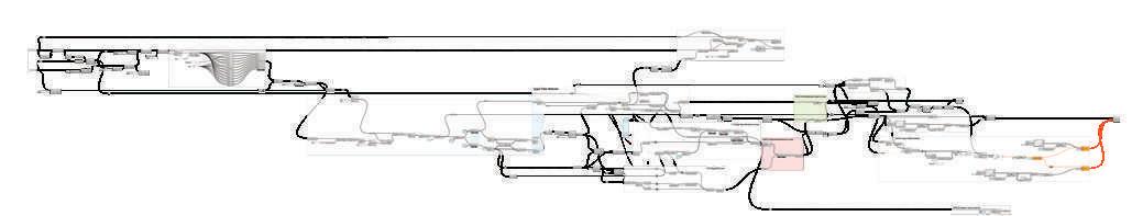 The „dragon scales“ characteristics which shows different heights at each opening by raising two of the six points of a polyline got made by using Discontinuity on each line, a few more list operations and moving those points towards the Normals direction of each center point regarding its position on the shell, (as a basic Z-axis move wouldn’t get that result) and again based on an attractor towards a main line.