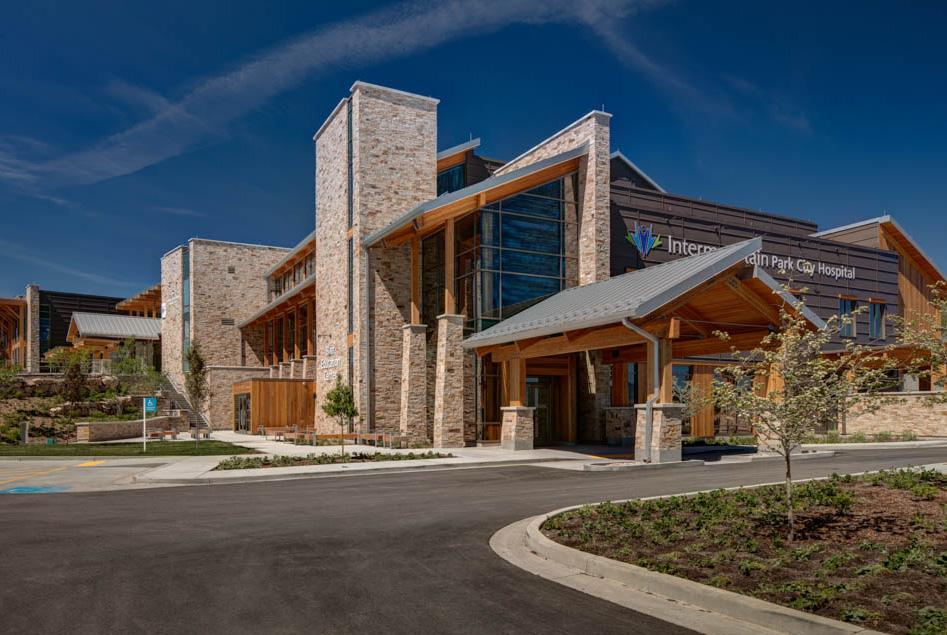 Blending modern functionality with communitycentered design, the Park City Hospital expansion was created to serve the area’s global clientele and elite athletes. Inspired by the community’s historic mining industry, the design integrates timber framing, stone, metal siding, and recycled materials from the original hospital, connecting modern functionality with local heritage. Key features include new clinic spaces, a premier orthopedic center, a high-performance rehab and training unit, the Live Well Center, wellness spaces, and other renovation work.