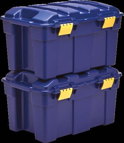 Diese großräumigen Aufbewahrungstruhen verfügen über einen vielseitigen Deckel, der einen einfachen Zugriff auf den Inhalt ermöglicht. Die seitlichen Klammern dienen als Scharniere oder können vollständig gelöst werden, um den Deckel komplett abzunehmen. Dank des vertieften Deckeldesigns lassen sich die Truhen sicher und stabil stapeln und optimieren so den verfügbaren Platz, während der Inhalt geschützt bleibt. Hergestellt aus 100 % recyceltem Post-Consumer-Polypropylen (ausgenommen Klammer-Verschlüsse) sind diese Truhen BPA-frei und am Ende ihrer Lebensdauer vollständig recycelbar.