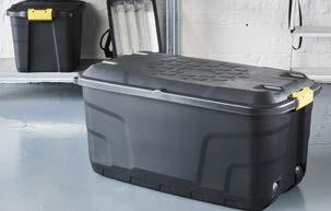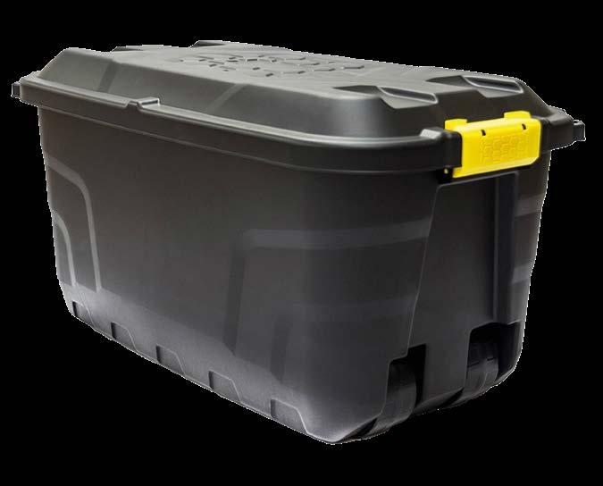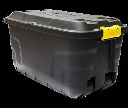Die Truhen mit integrierten Rollen sind ideal für schwere Inhalte und erleichtern den Transport auch bei voller Beladung. Sie kombinieren hohe Stabilität mit guter Mobilität und lassen sich befüllt stapeln sowie leer platzsparend ineinander lagern. Auch hier bietet eine Vorrichtung für ein Vorhängeschloss zusätzliche Sicherheit. Dank ihrer robusten Bauweise aus bis zu 95 % recyceltem Kunststoff sind sie vollständig recycelbar und vielseitig einsetzbar –ob zu Hause, in der Werkstatt, im Transporter oder auf der Baustelle.