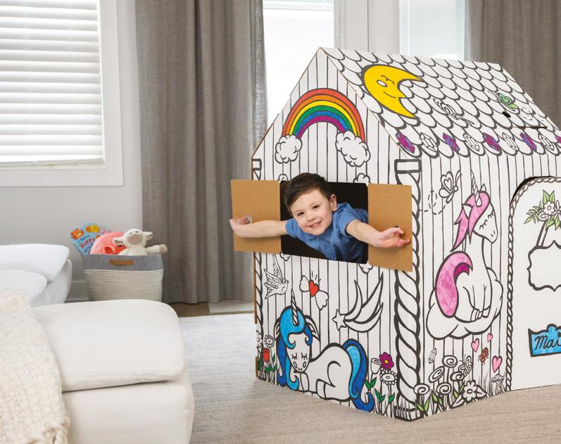 Whether children are running their own Treats & Eats Café, creating a magical Unicorn Hideaway, or celebrating with a colourful Birthday House, each playhouse invites kids to colour, customise, and make every detail their own. Vibrant designs and interactive doors and windows. Made from strong FSC® certified cardboard, simple tool_free assembly, printed with water-based inks, fully CE/UKCA compliant.