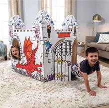 Bring storytelling to life with the X-Large Colour-In Castle. Children can colour, customise, and explore with interactive doors and cut-out windows. Made from strong FSC® certified cardboard, it assembles with no tools, is printed with water-based inks and is fully CE/UKCA compliant.